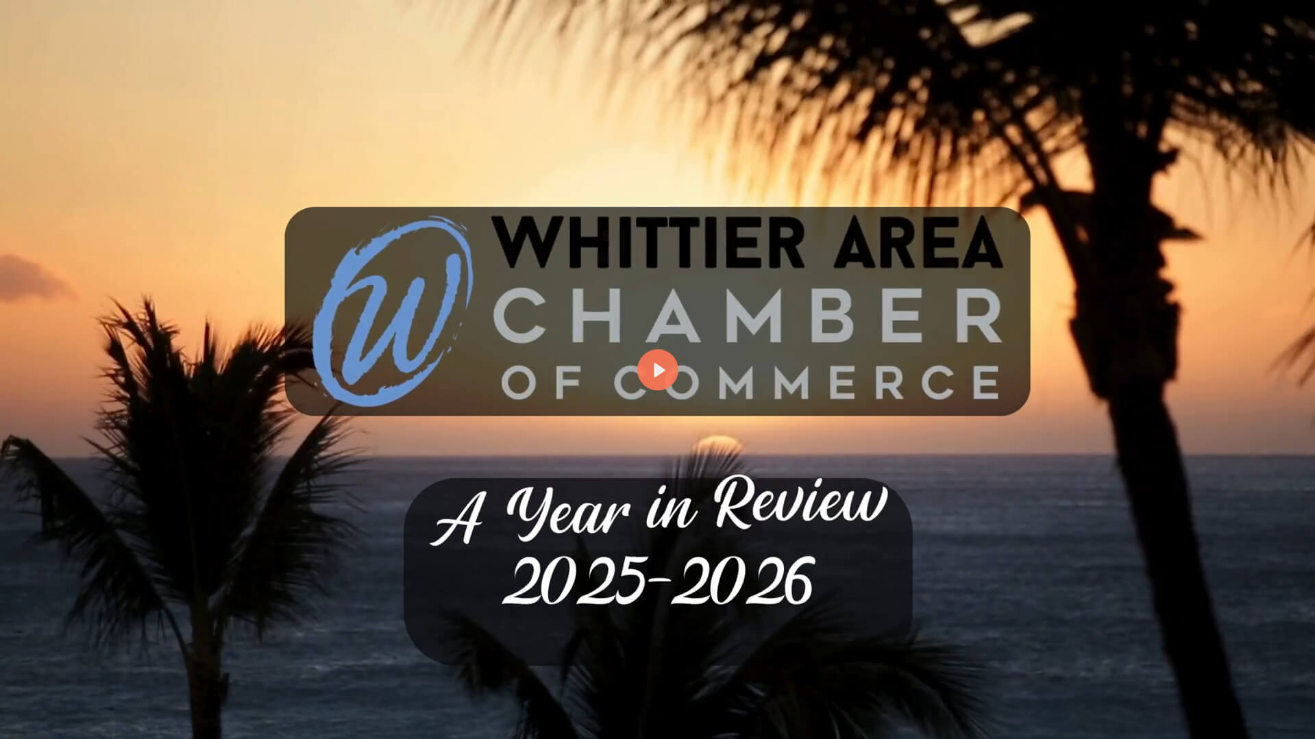 CATALYST For Business Growth CONVENER Of Leaders & Influencers To Get Things Done CHAMPION For A Thriving Community Membership BusinessDirectory Events Join Now Hot Deals Upcoming Events Submit Your Event Full Calendar New Members & Renewing Members Featured Stories & Events Register Here Register Here Register Here Register Here Click Here For More Information Register Here 2026 Year In Review Testimonials Ross M. Gile As an active member of the Whittier Area Chamber of Commerce, I cannot… Read More Rob Marin Being part of the Whittier Chamber gives me access to other business and… Read More Sequoia Lynch My name is Sequoia Lynch, I have just graduated from Life Pacific University… Read More Steve Rosas I have worked with several Chambers in the past, but none have had… Read More Ara Balayan Catering by Herach and Ara was started in February of 1984 as a… Read More Rich Southard While I acquired a business that had been an important part of the… Read More John Bogdanov I joined the Whittier Chamber in July of 2018 because it is one… Read More Laurie Perschbacher I am proud to have been a Chamber member for 26+ years. It… Read More Angie Mericle “The Flag Shop has been part of the Whittier Chamber for 34 years… Read More Barbara Dunagan “As I start my 2nd year with the Whittier Chamber I believe it… Read More View Testimonials Chairman’s Circle White Emerson Mortuary Boys & Girls Clubs of Whittier/Pico Rivera YMCA of Greater Whittier East Whittier City School District PIH Health Ross Hills usbank Credit Union of Southern California Athens Services Kaiser Permanente Modern Woodman Southern California Edison MAP Property Management Next Previous